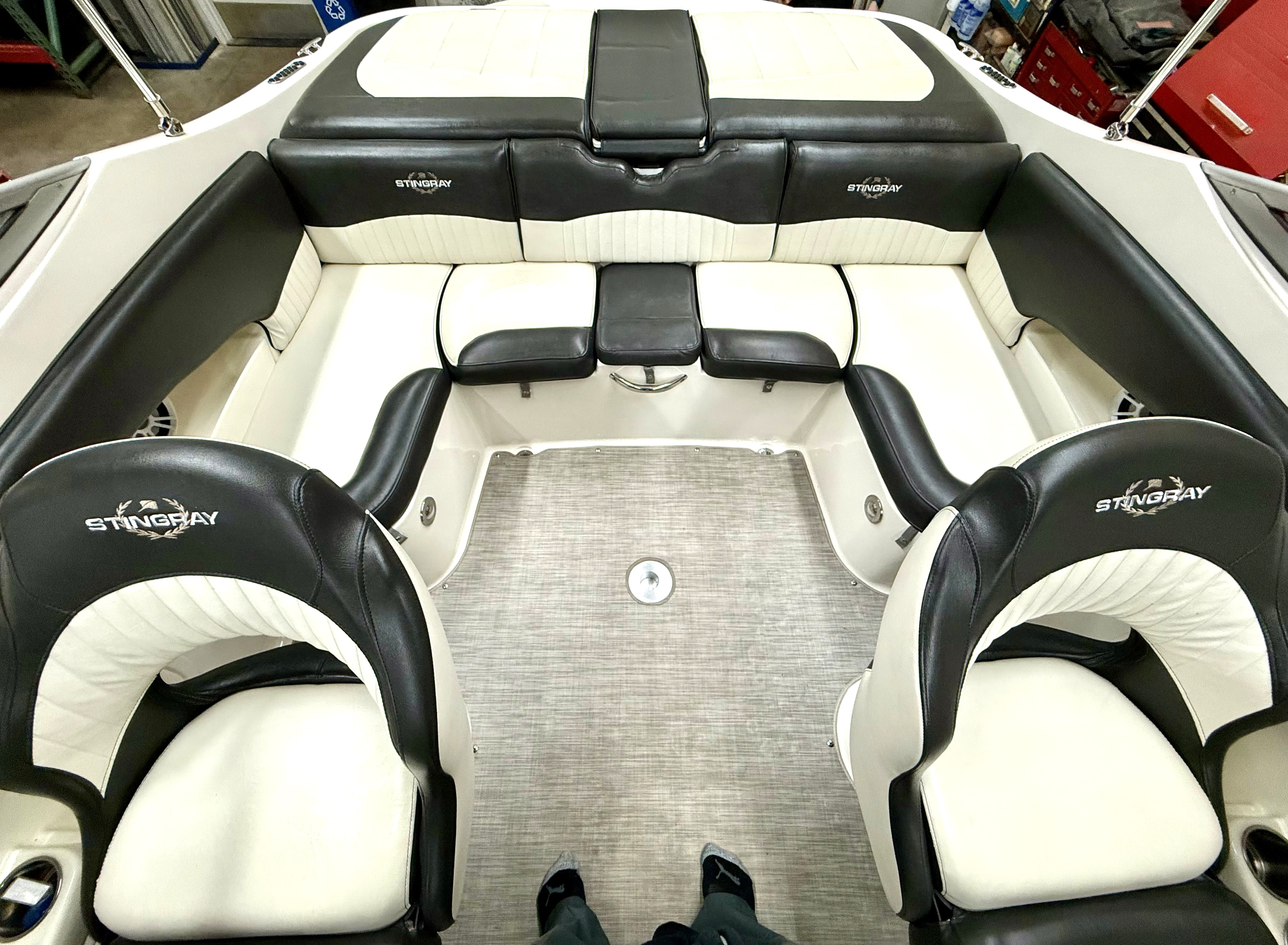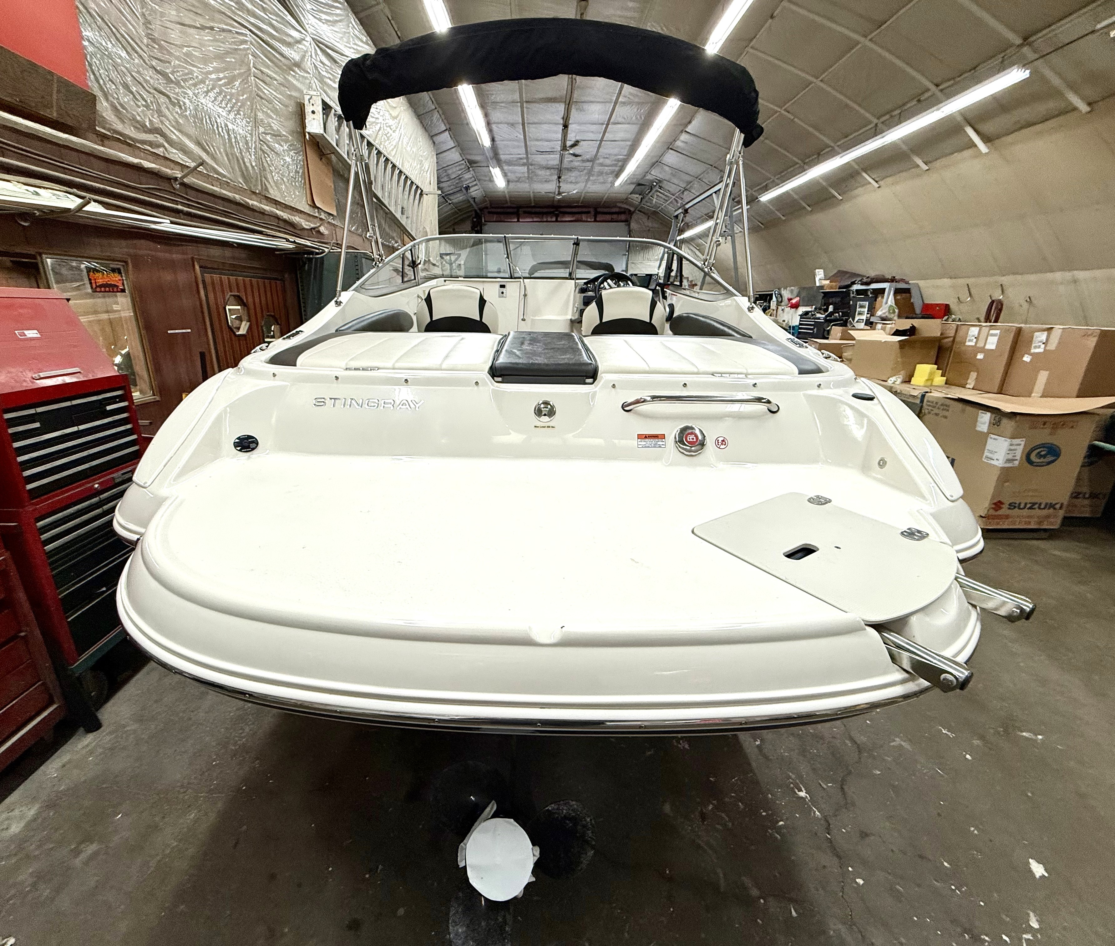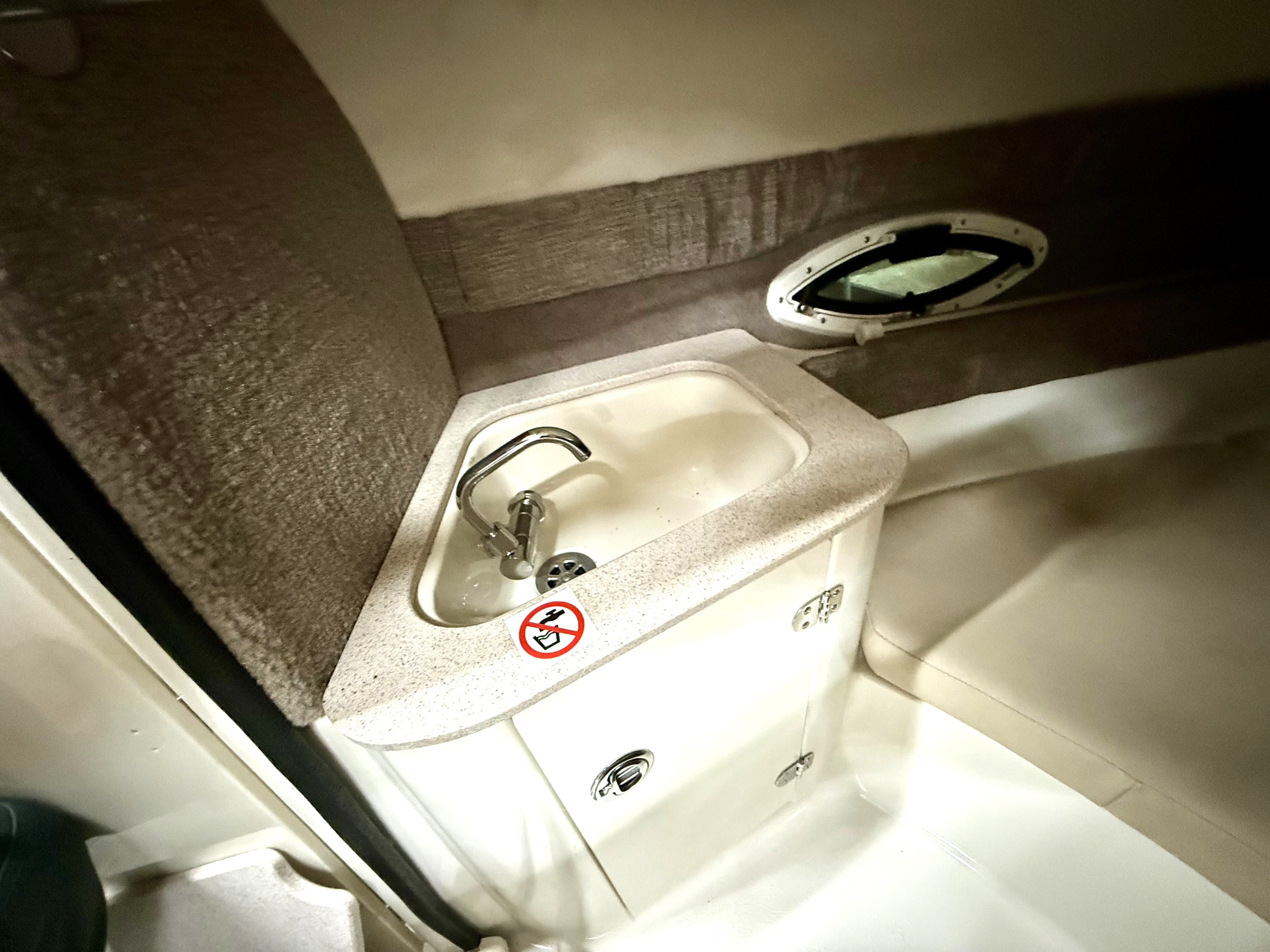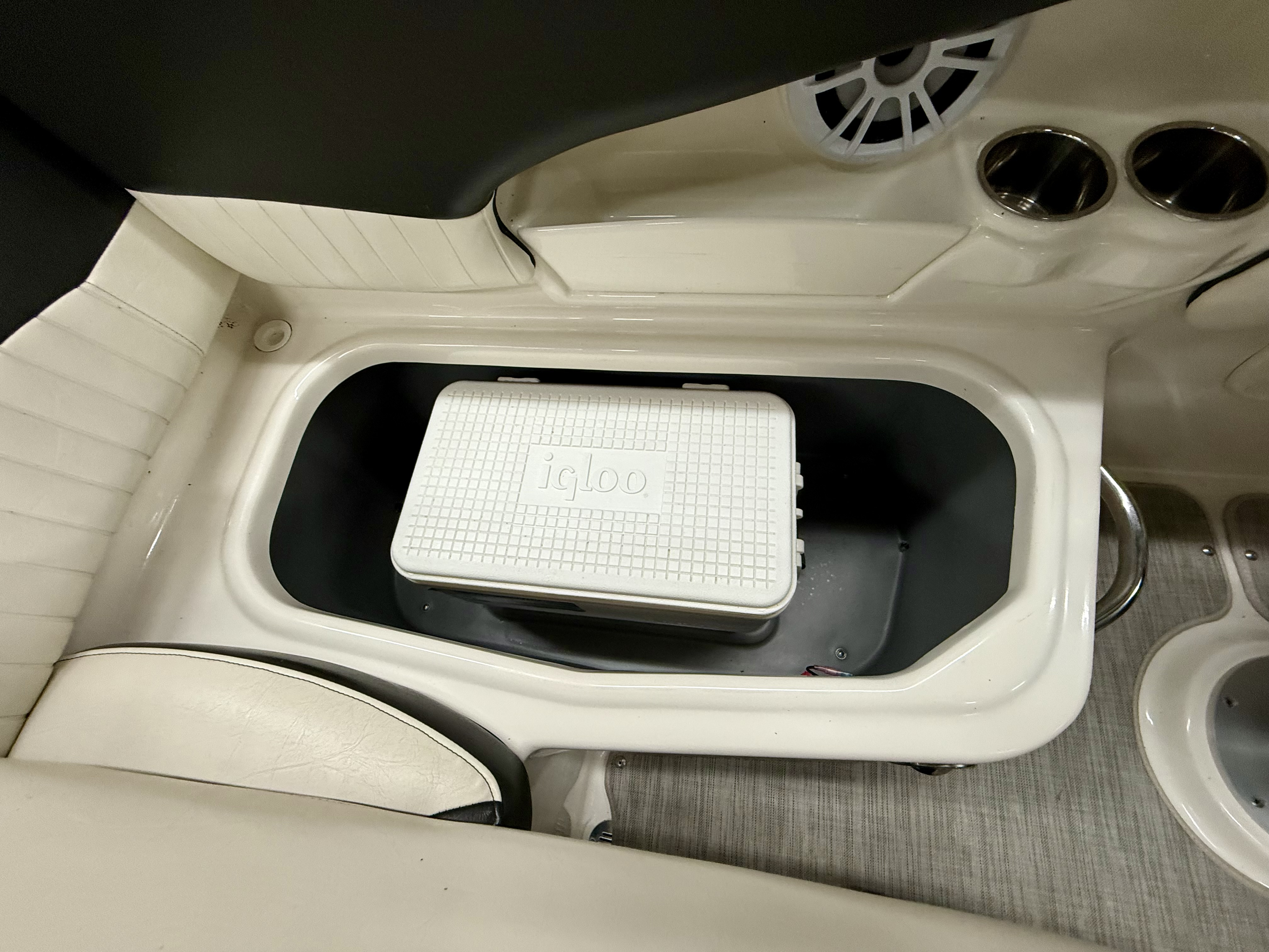 Very clean, one owner, ONLY 38 hours! 4.5L 250hp Mercruiser, sun sport interior, dual bucket seats with flip up bolsters, deluxe steering wheel, stereo, GPS, trim tabs, snap out carpet, table kit, cooler, Head, sink, walk thru windshield, bimini top enclosure, cockpit cover, Venture tandem axle trailer