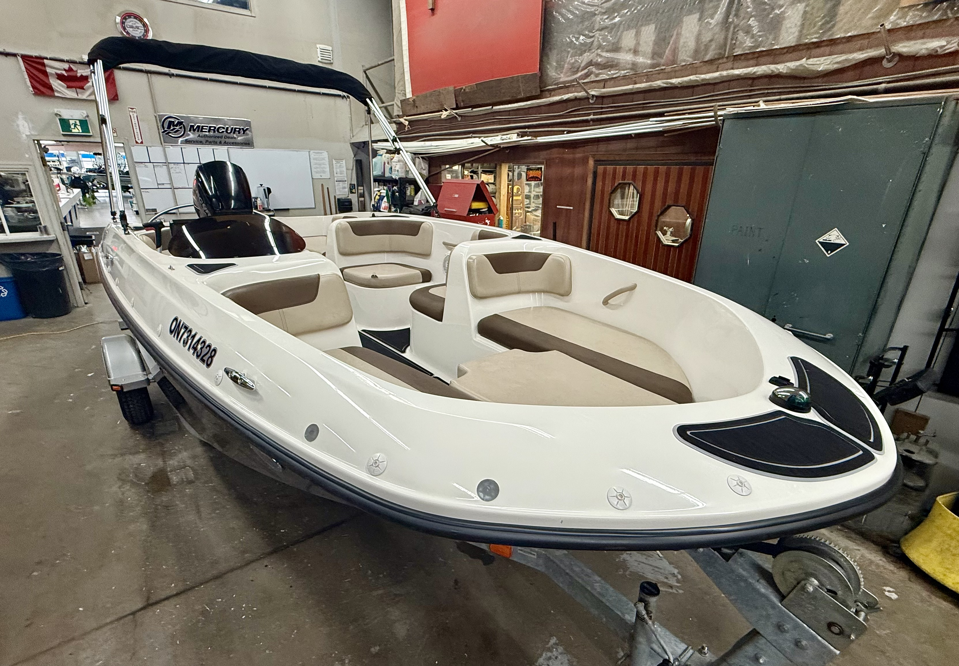 Clean, 115hp Mercury 4 stroke 196 hrs, Bimini top, new seadeck flooring, stereo, GPS, Turbo Swing, rear fill in cushion, galvanized Karavan trailer with swing tongue